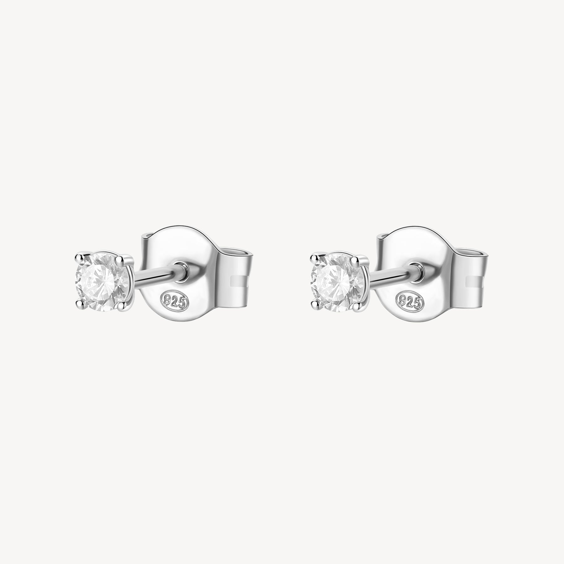 Orecchini a lobo in argento rodiato 925‰ con round cubic zirconia.