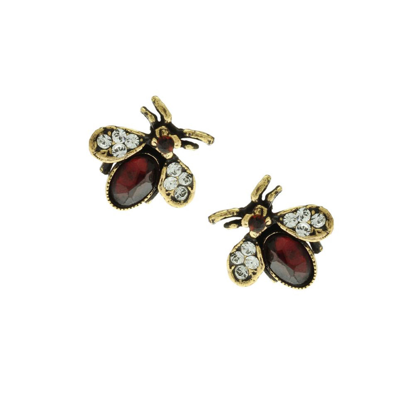 Orecchini in ottone bagnato in oro a perno con granati e swarovski. Bigiotteria stravagante ideale per un regalo. – Selezionare la finitura scelta – Dimensione H 0,6cm L 0,8cm.