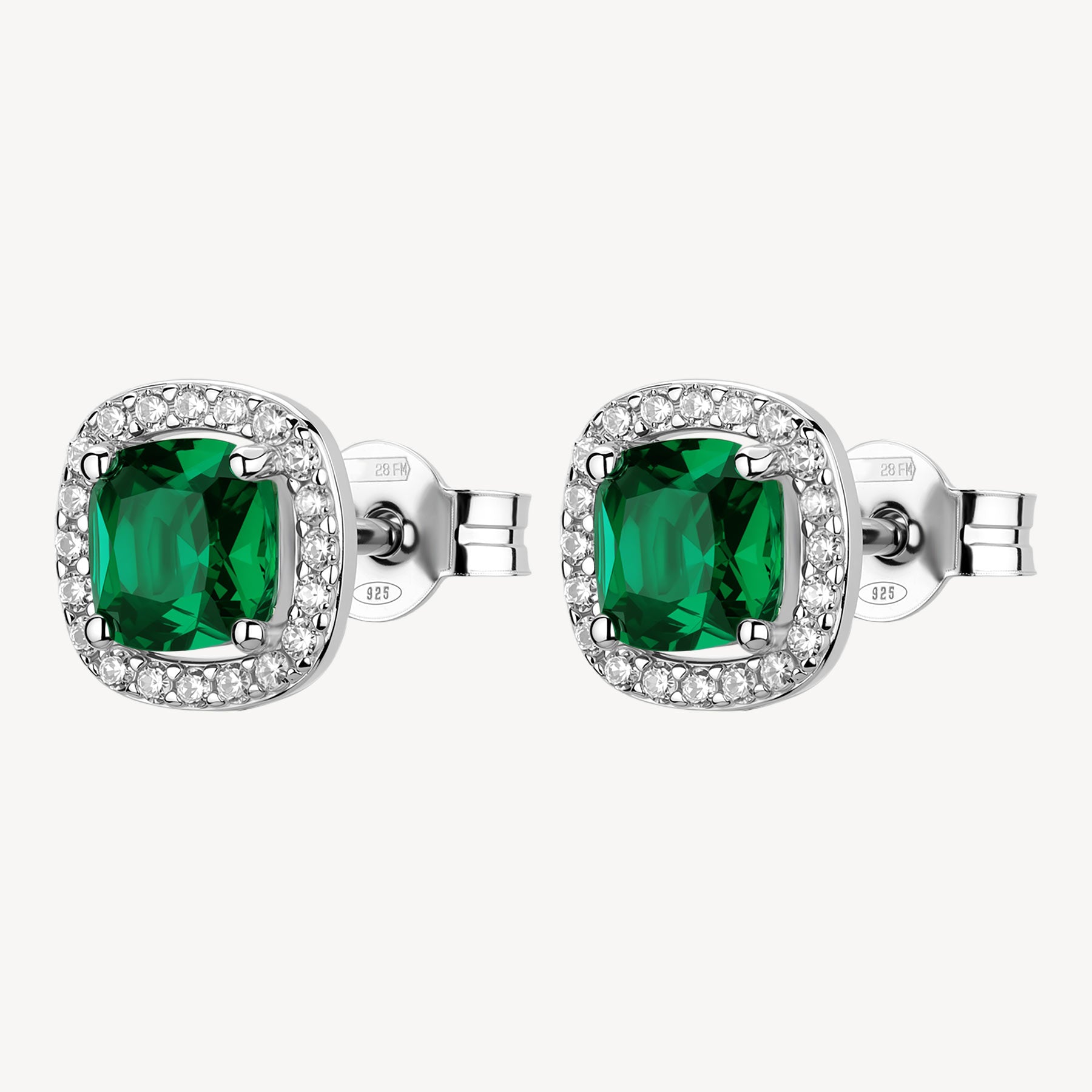 Orecchini a lobo in argento rodiato 925‰ con cubic zirconia chiari e cubic zirconia colore emerald.
