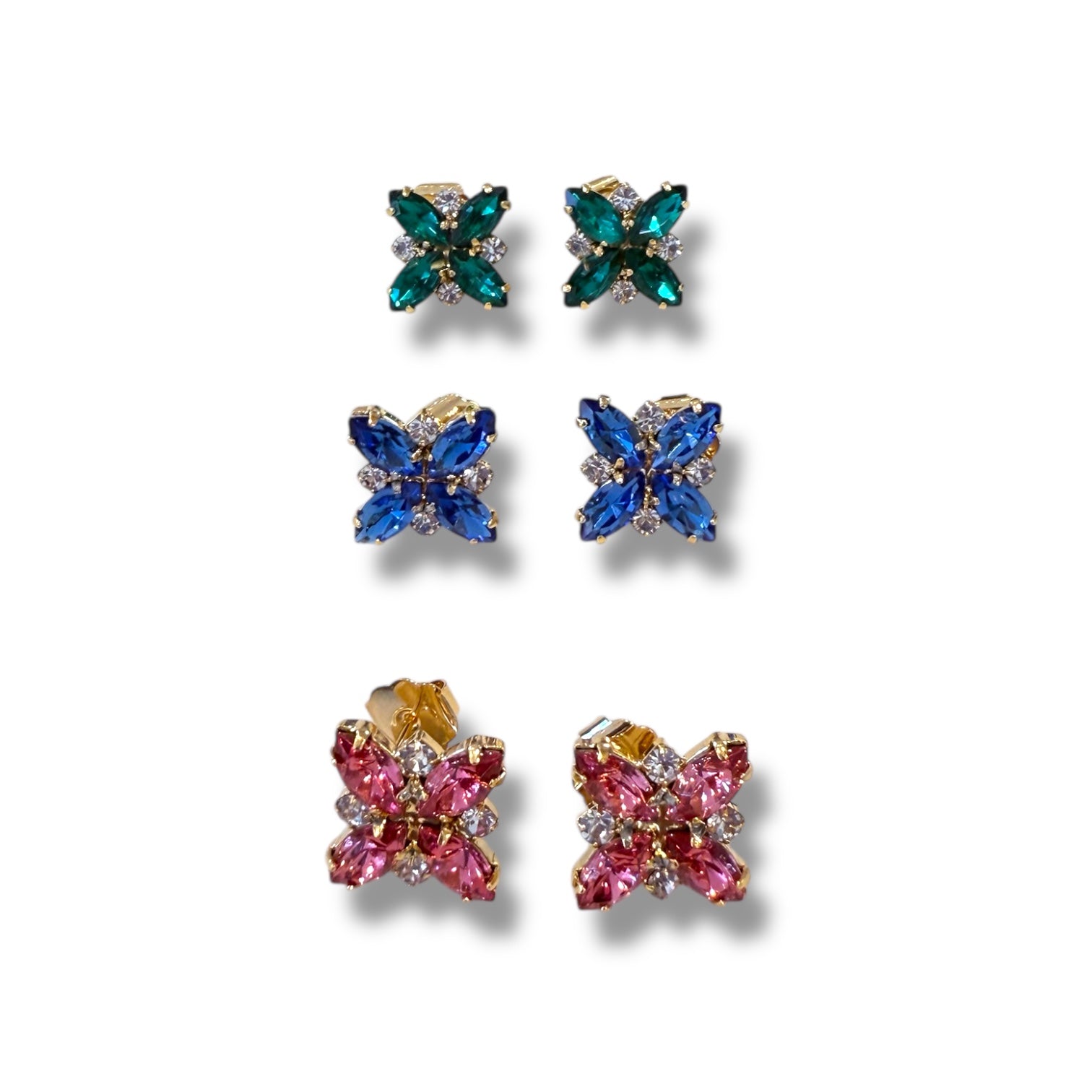 Orecchini in ottone anallergico con bagno gold con cristalli colorati