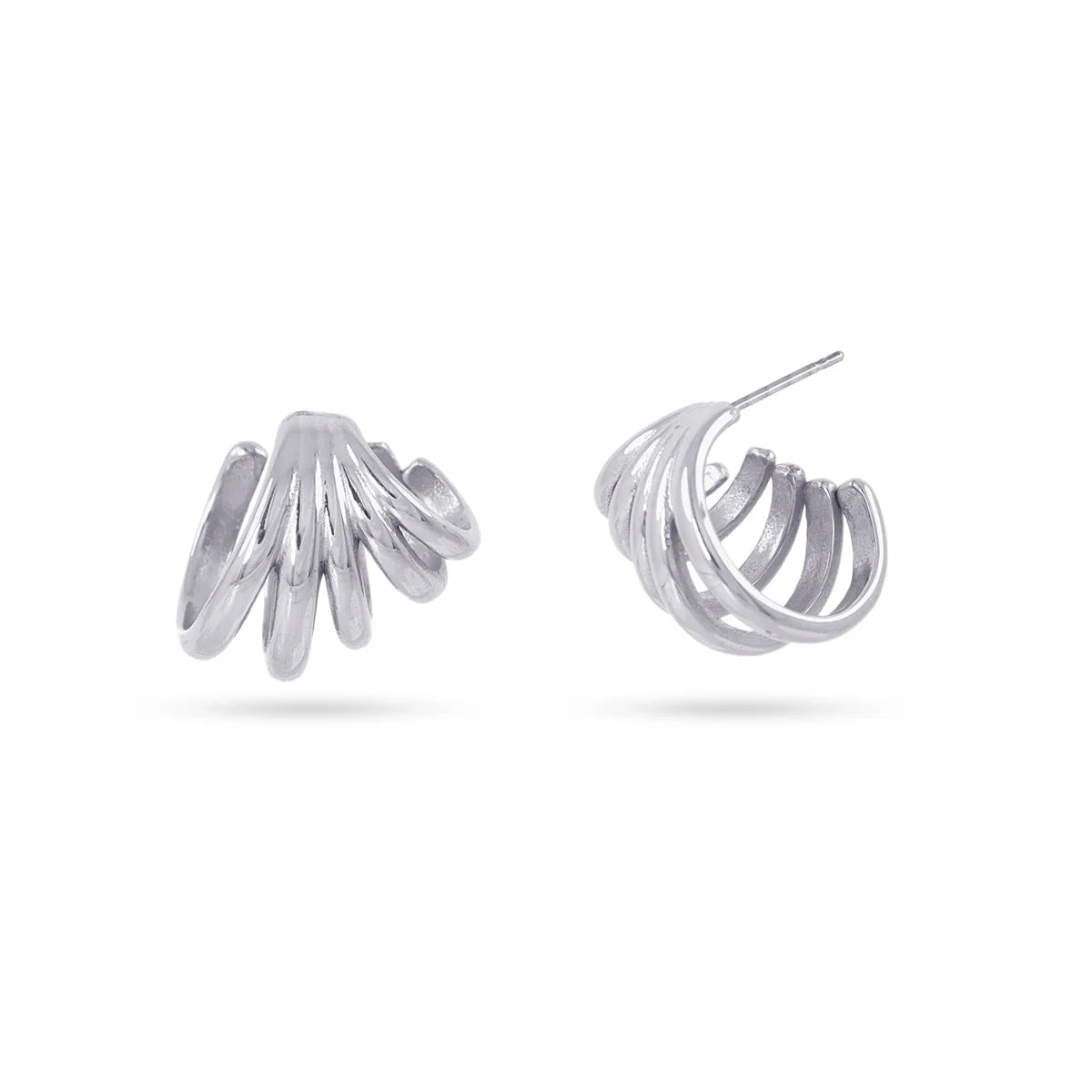 Questi cerchi chirurgici in acciaio, disponibili in oro o argento, presentano un design audace a cinque linee che cattura ogni sguardo. Ipoallergenico e resistente all'acqua, offrono comfort e una chiusura a scatto sicura per accompagnarti nella tua vita quotidiana con stile e sicurezza spensierata.