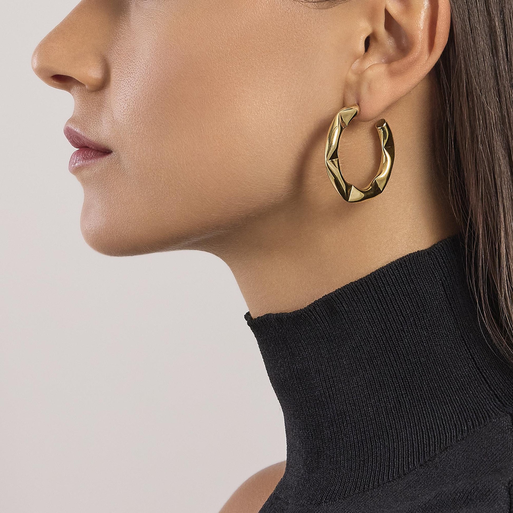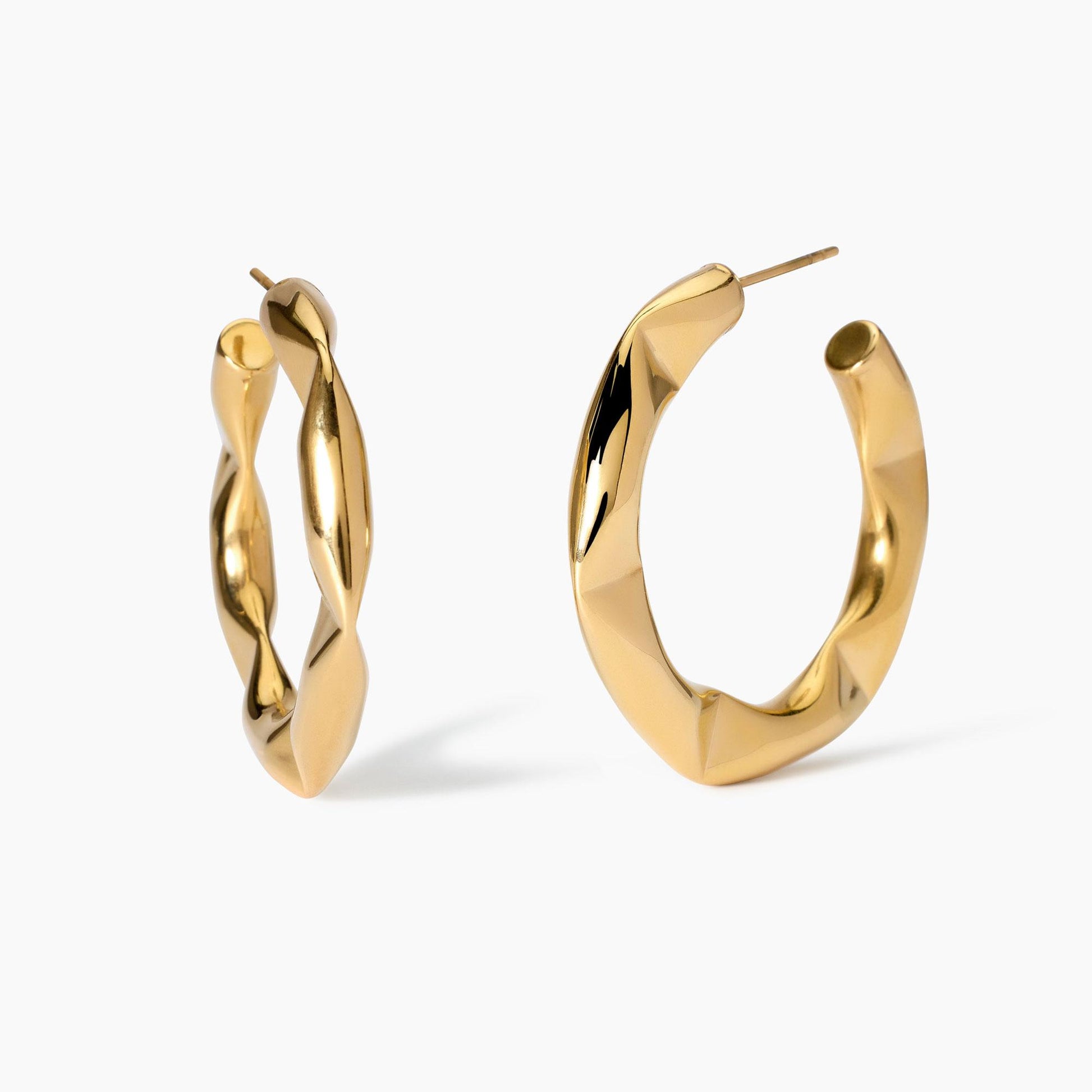 Orecchini poligonali in acciaio dorato.