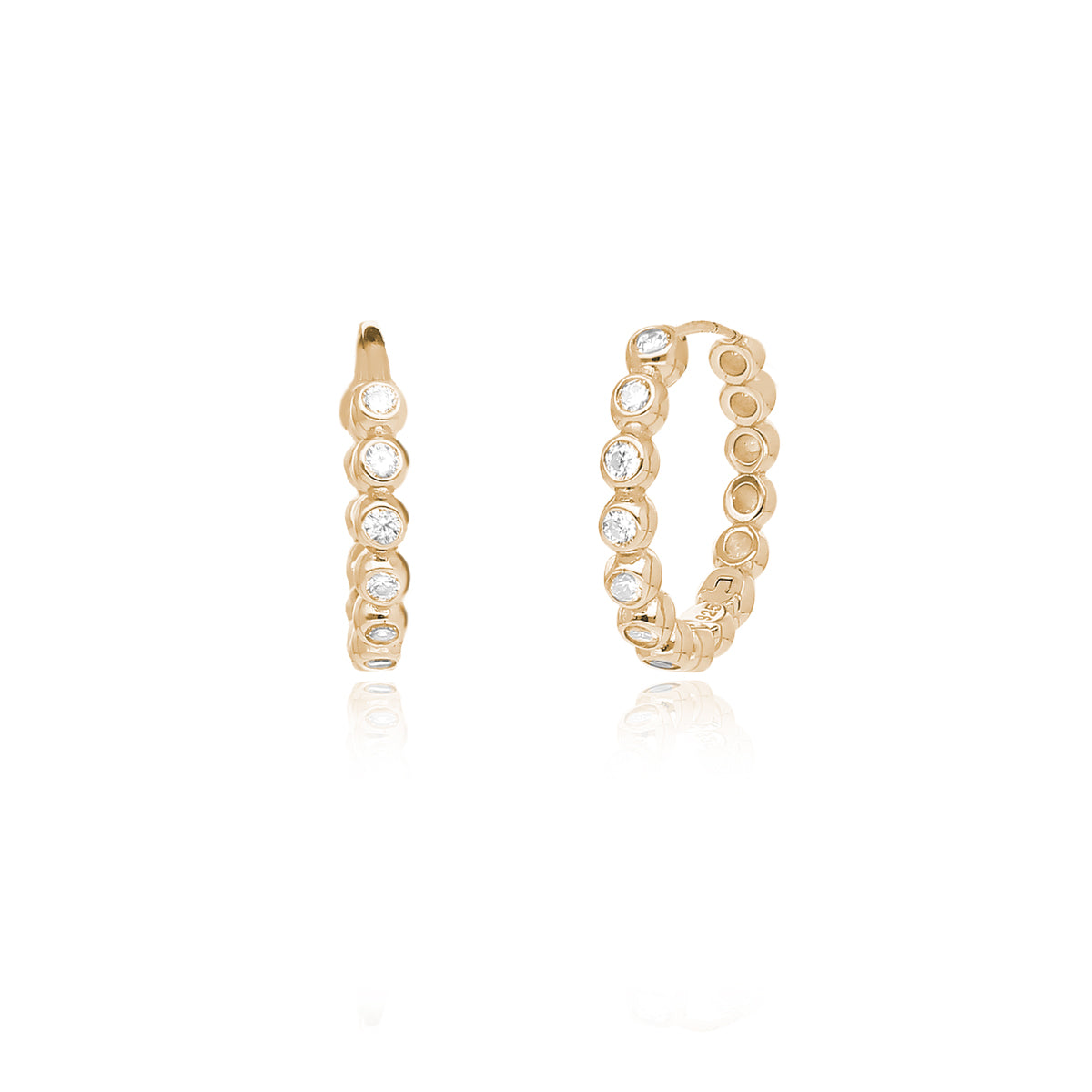 Orecchini a cerchio in argento dorato con punti luce in zirconi.