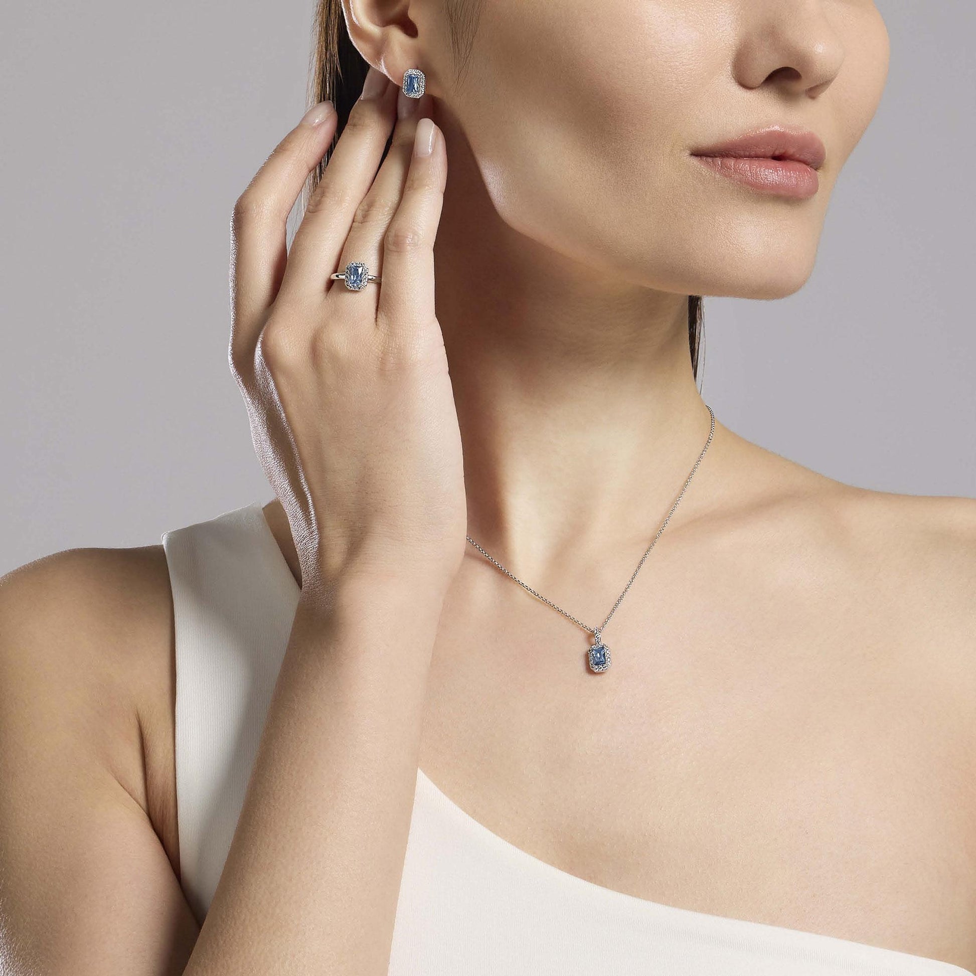 • Materiale: Argento rodiato 925, Zirconi, Acquemarine sintetiche