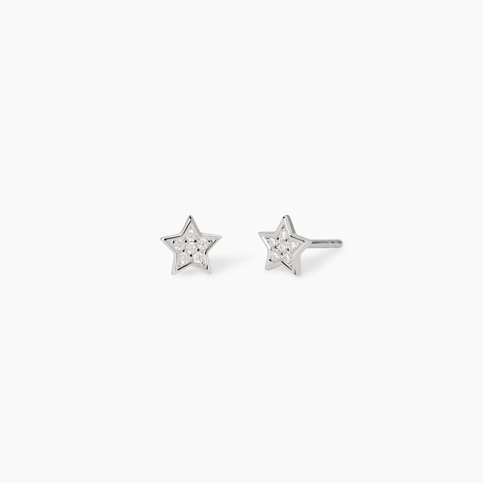 Orecchini a lobo in argento con forma stella in pavé di zirconi bianchi.