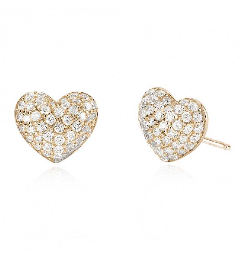 Orecchini a lobo in argento/ argento dorato a cuore in pavé di zirconi.