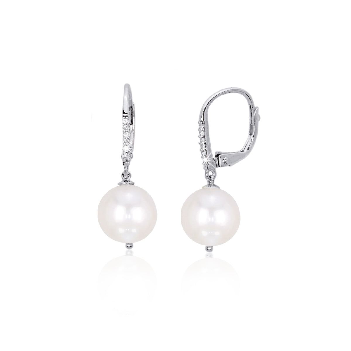 Orecchini a monachella in argento con perla coltivata e zirconi.