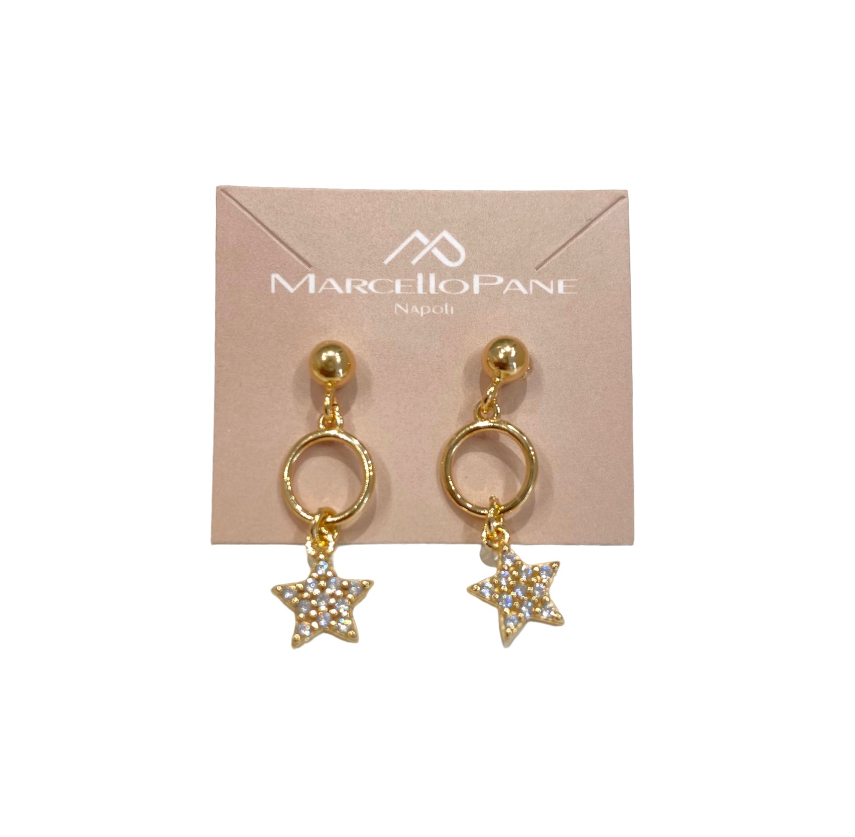 Orecchini in Argento 925 con bagno in oro giallo con stellina pendente con zirconi.