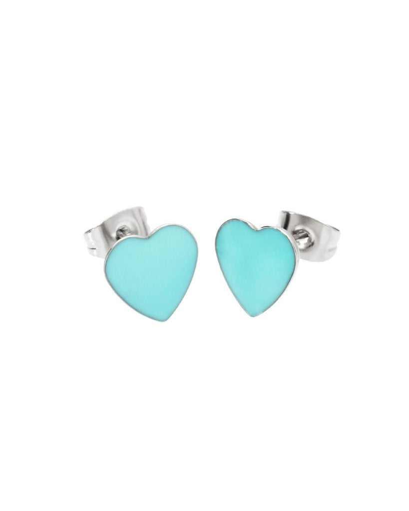 Colore: argento e turchese. Gli orecchini sono in acciaio inossidabile 316L a forma di cuore con smalto turchese e chiusura a perno.