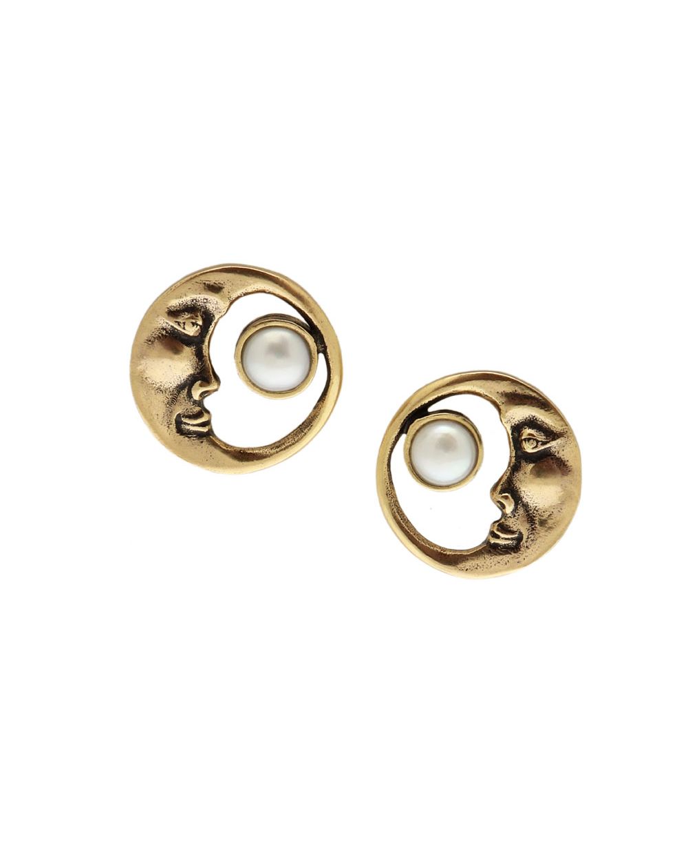 Orecchini Mezzaluna in ottone dorato con al centro una perla