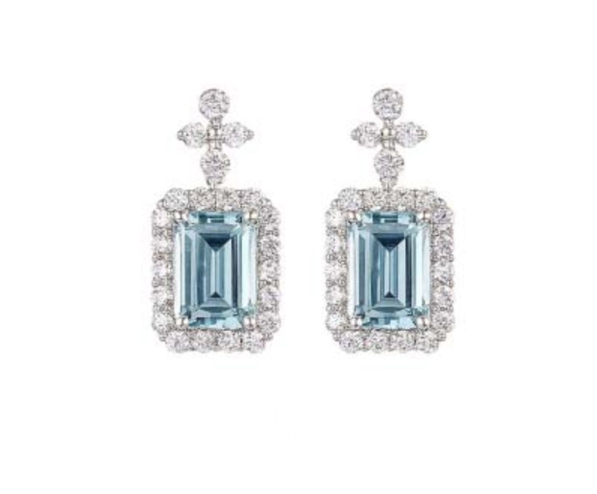 Orecchini Piti Malì donna Fiore e baguette acquamarina