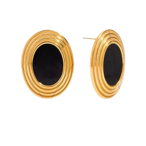 Orecchini Piti Malì donna Brunilde Bottone ovale con smalto nero