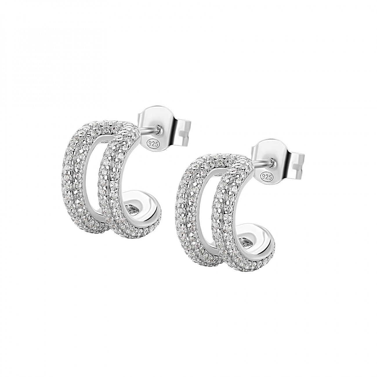 Orecchini lobo semicerchio in argento 925‰, con pavè di 298 cubic zirconia bianchi.