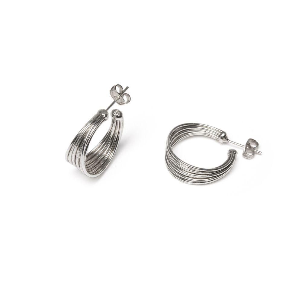Orecchini cerchio multifili. Dimensione 1 cm. Chiusura a farfalla. Placcato in argento. Nickel tested. Lavorazione artigianale.