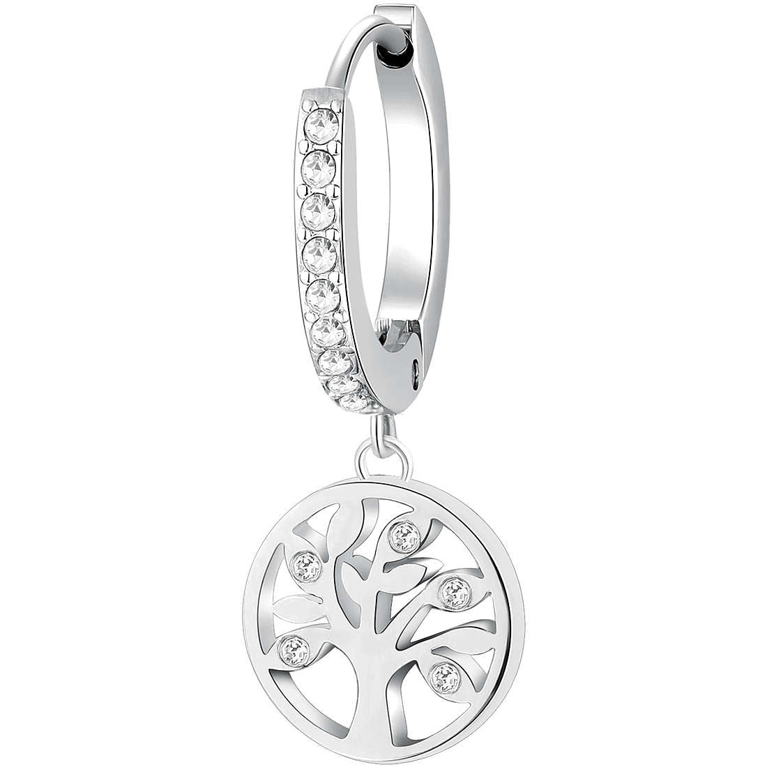 Orecchino singolo in acciaio 316L con pendente a forma albero della vita e cristalli.