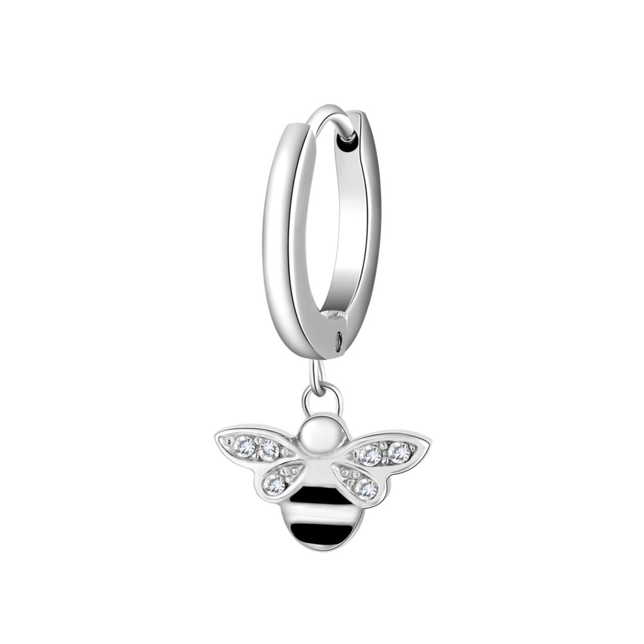 Orecchino singolo in acciaio 316L con pendente a forma di ape con smalto nero e cristalli