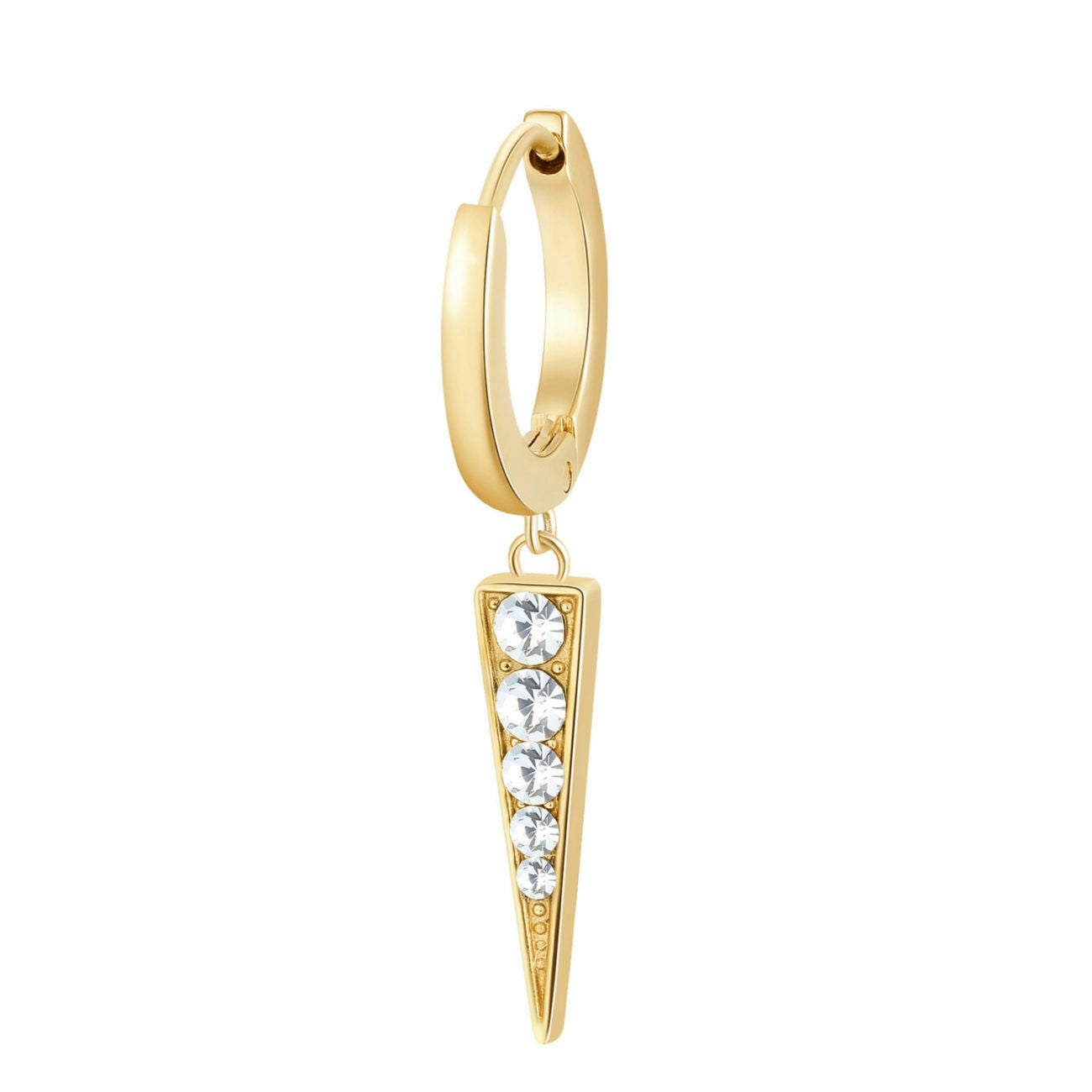 Orecchino singolo in acciaio 316L e finitura oro con pendente a forma di lancia e cristalli