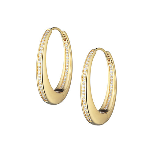 Orecchini a cerchio in argento dorato 925 con dettaglio con zaffiri bianchi. Lunghezza totale cm 2,5.