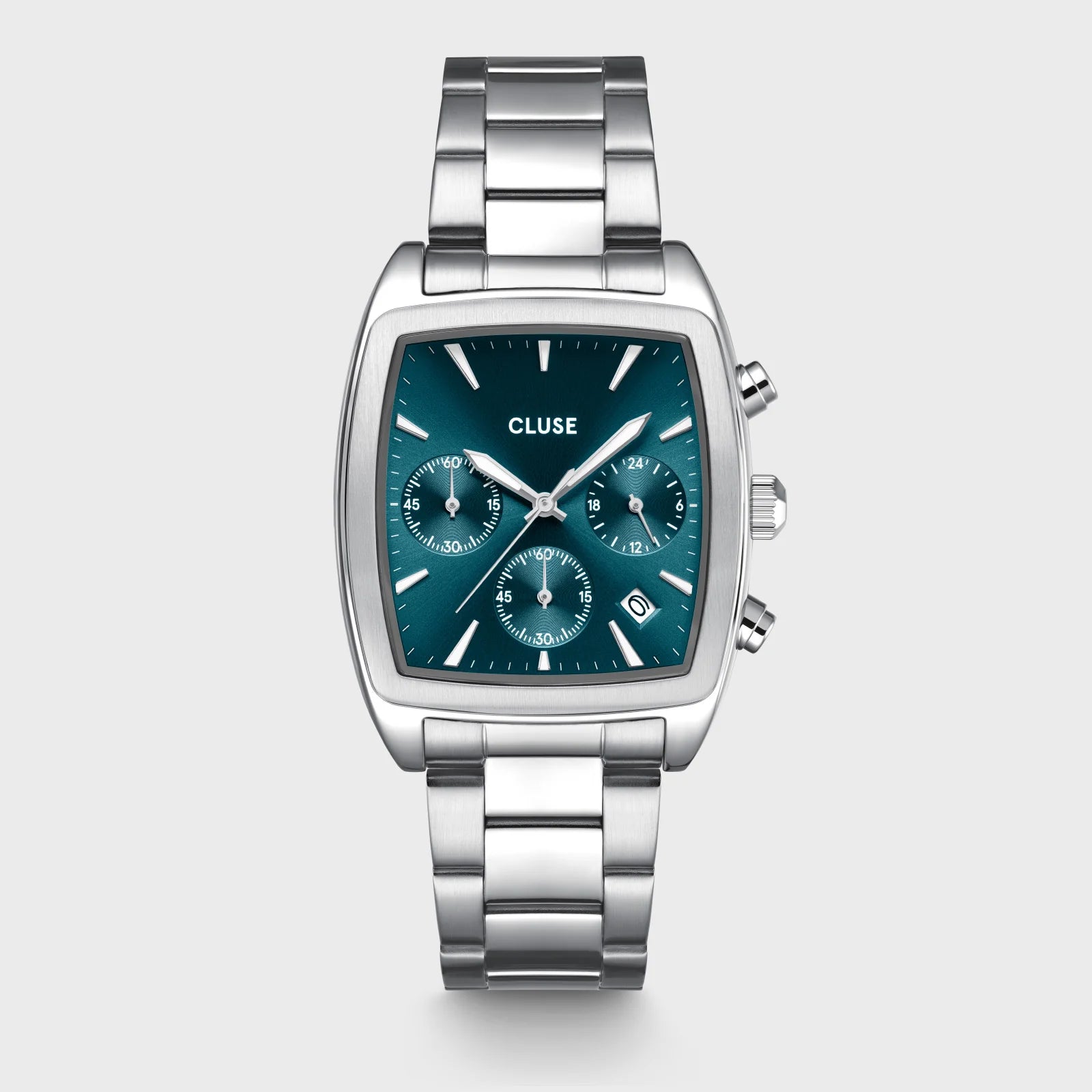 L'orologio Quartaut Chrono da uomo vanta un inconfondibile mix di forza e lusso. Caratterizzato da una cassa tonneau color argento, un cinturino in acciaio inossidabile a tre maglie e un quadrante blu con tre sottocronografi. Cesellato alla perfezione, offre sia comfort che stile. Per regolare il cinturino, ti consigliamo di rivolgerti al tuo gioielliere di fiducia.