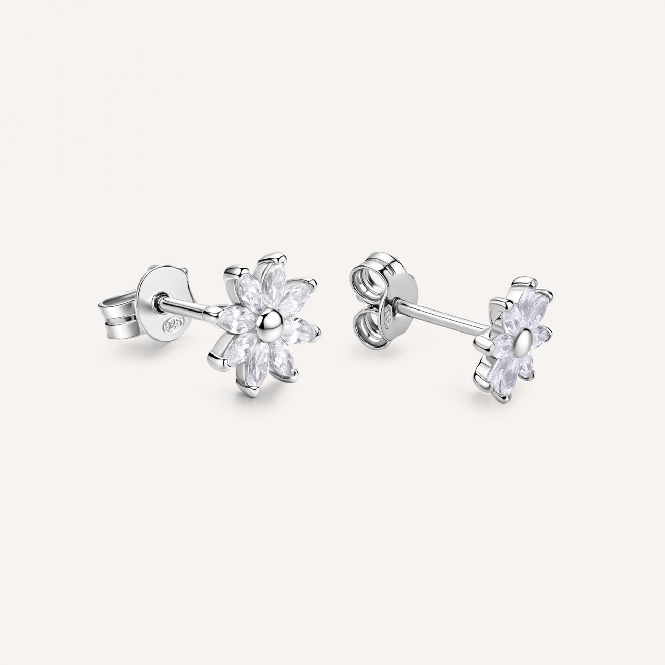 Orecchini con fiore a lobo in argento 925‰, 16 cubic zirconia bianchi